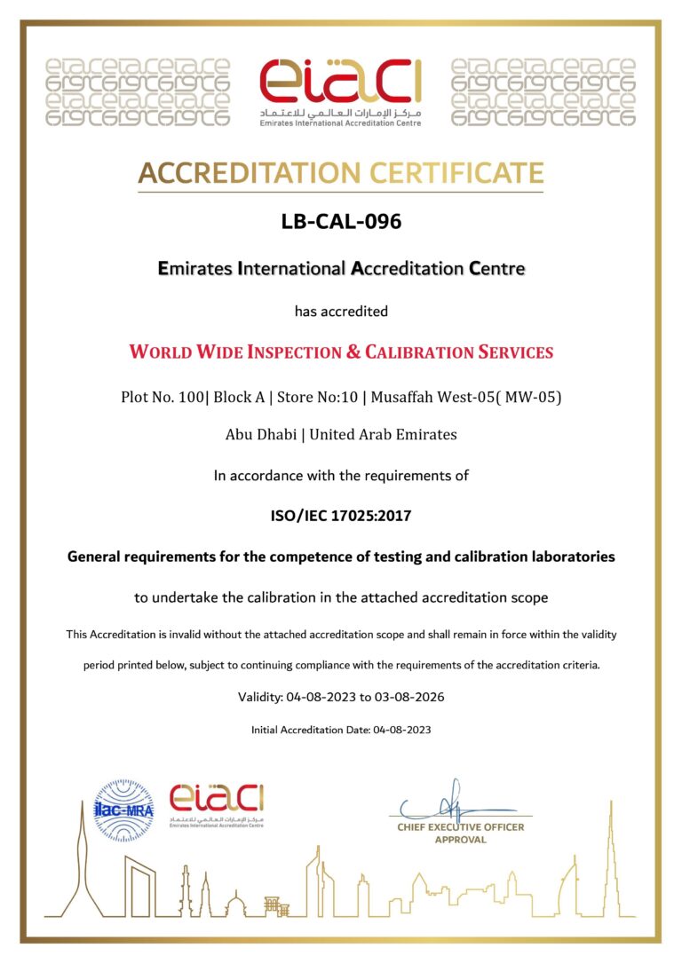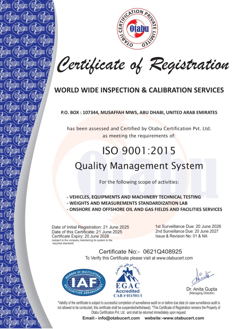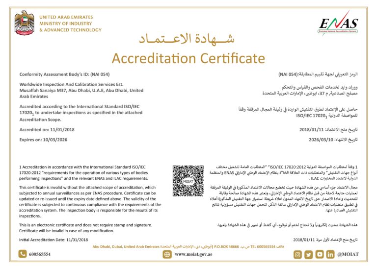 World Wide Inspection & Calibration Services Est, dedicated to service specialized in the field of Lifting & Material handling Equipment, instrumentation & control related to oil, gas, power, water, petrochemical and processing industry.
